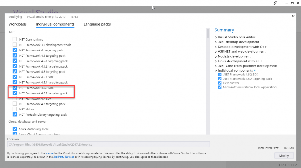 Aşağıdaki ek Individual Components (bireysel bileşenleri) seçin: