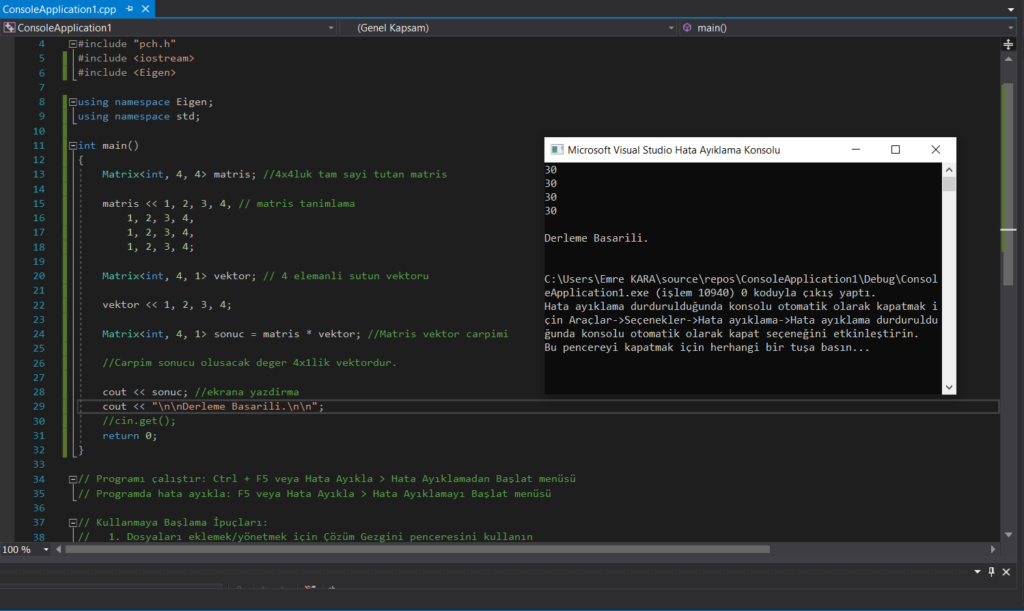 Burada vcpkg ile kurabileceğiniz tüm kütüphaneler listelenmektedir. Aradığınız kütüphaneyi listeden yazılacak komutu belirleyin. Biz bu anlatımda “eigen3” kütüphanesini kuracağız.