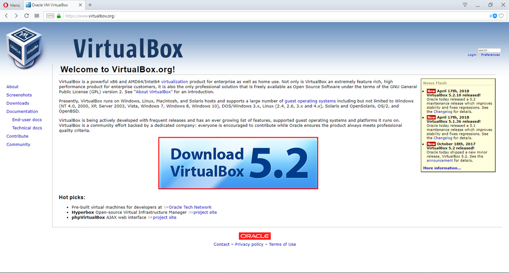 Yukarıdaki linkten resmi siteye gidilir ve resim 1’de çerçeve içine alınmış bölüme tıklanarak kullanılan işletim sistemine uygun VirtualBox sürümü indirilir, daha sonra aynı sayfada bulunan VirtualBox Extension Pack indirilir.